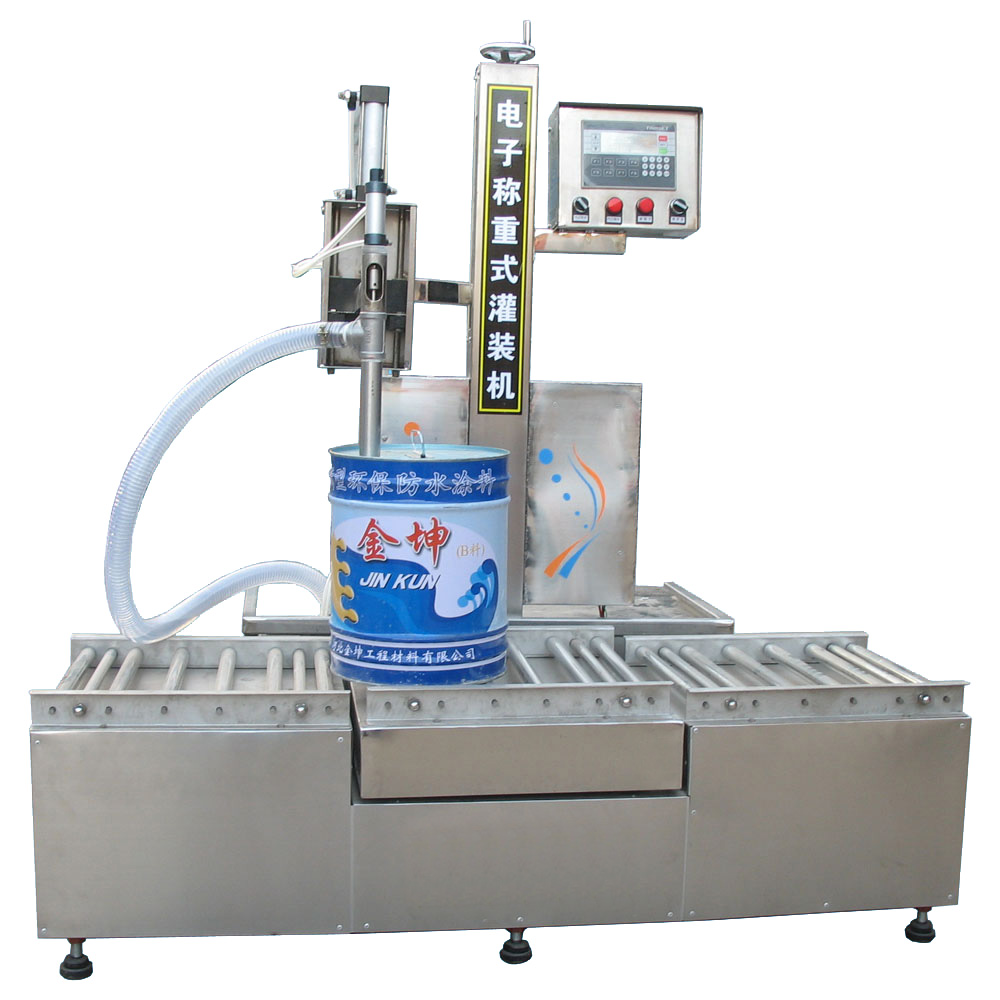 電子稱重式自動灌裝機利用高精度的動態稱重秤,結合快灌閥門和慢灌閥門,是灌裝容量無誤差,大限度的降低了產品的損壞率,保證了產品的質量節約了生產成本。